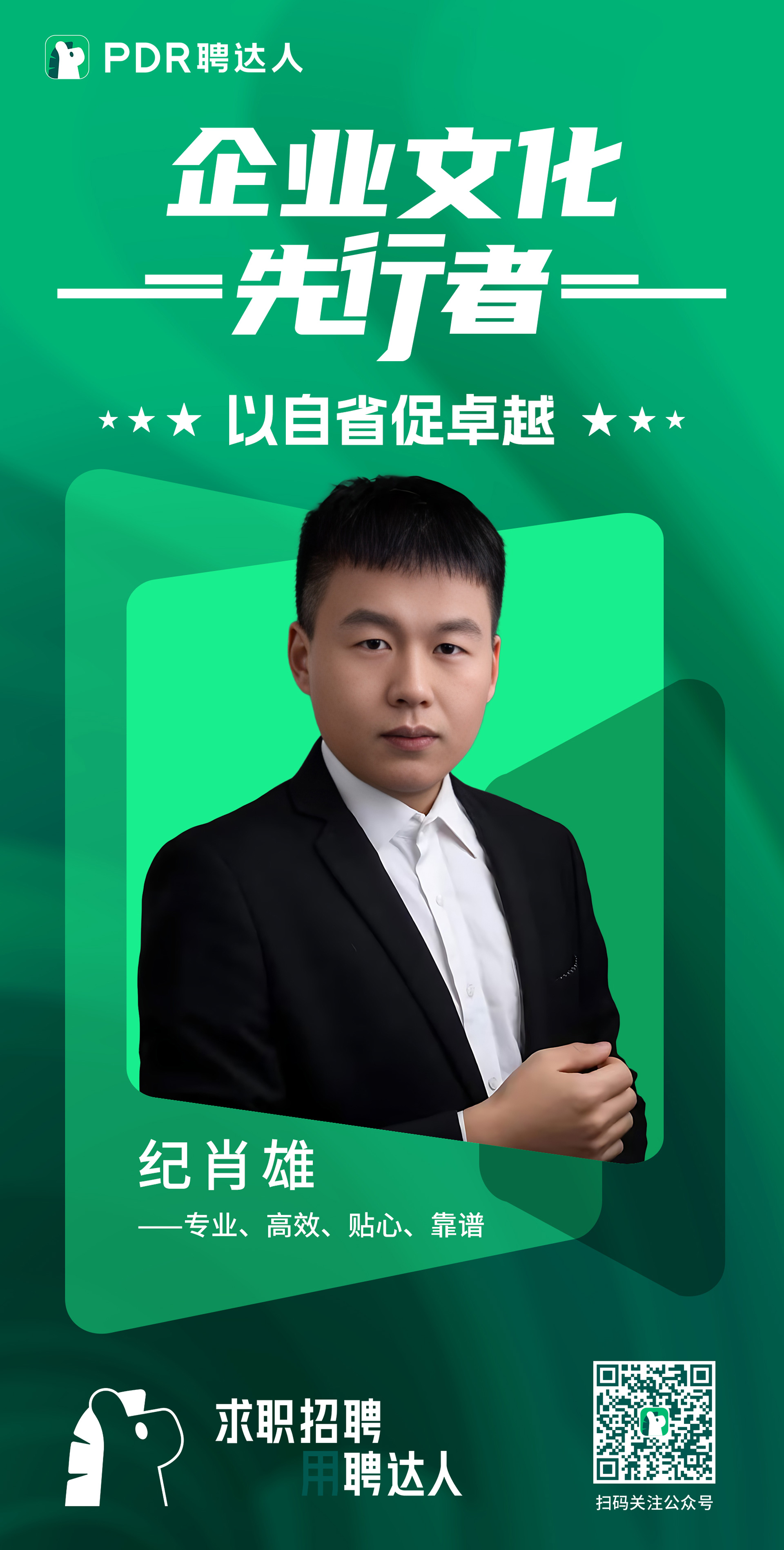 本期,我們評(píng)選出的聘達(dá)人「以自省促卓越」企業(yè)文化先行者是集團(tuán)銷售部商務(wù)主管紀(jì)肖雄,作為在聘達(dá)人集團(tuán)就職2年的優(yōu)秀人才,紀(jì)肖雄不斷奮斗,精進(jìn)自己,做出了優(yōu)秀的成果