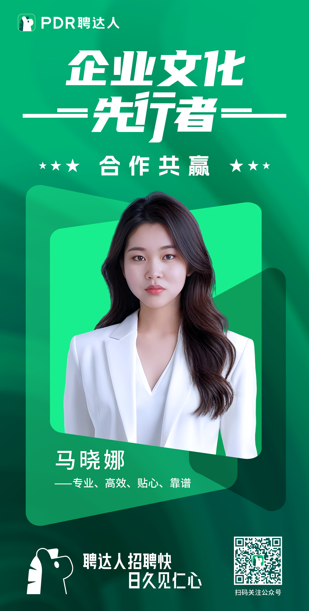 本期,為我們分享聘達人「合作共贏」企業文化的是集團財務部馬曉娜。她用四年如一日的勤勉與專業,以高度的責任感、高效的執行力以及真誠的協作精神,成為同事心中值得信賴的伙伴。